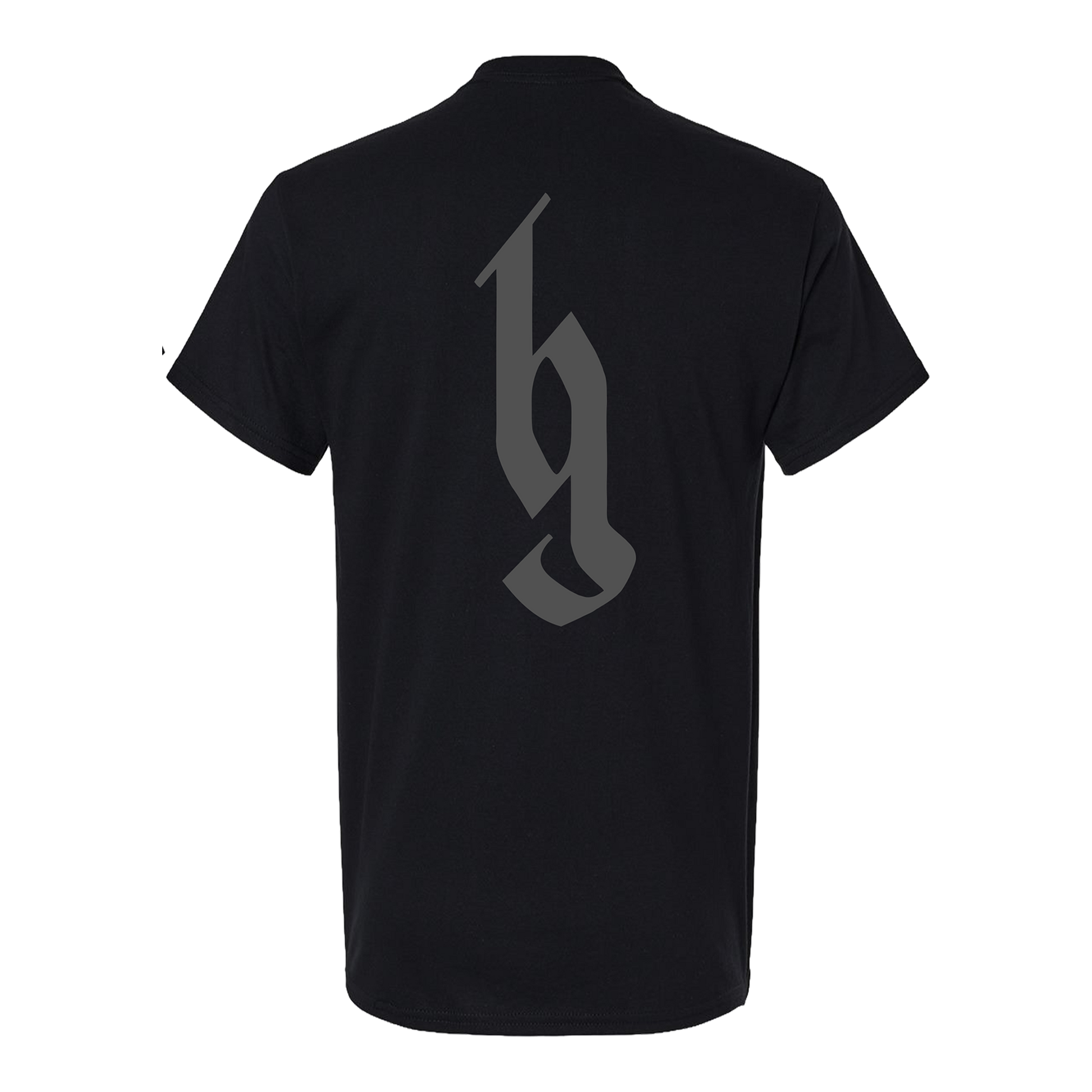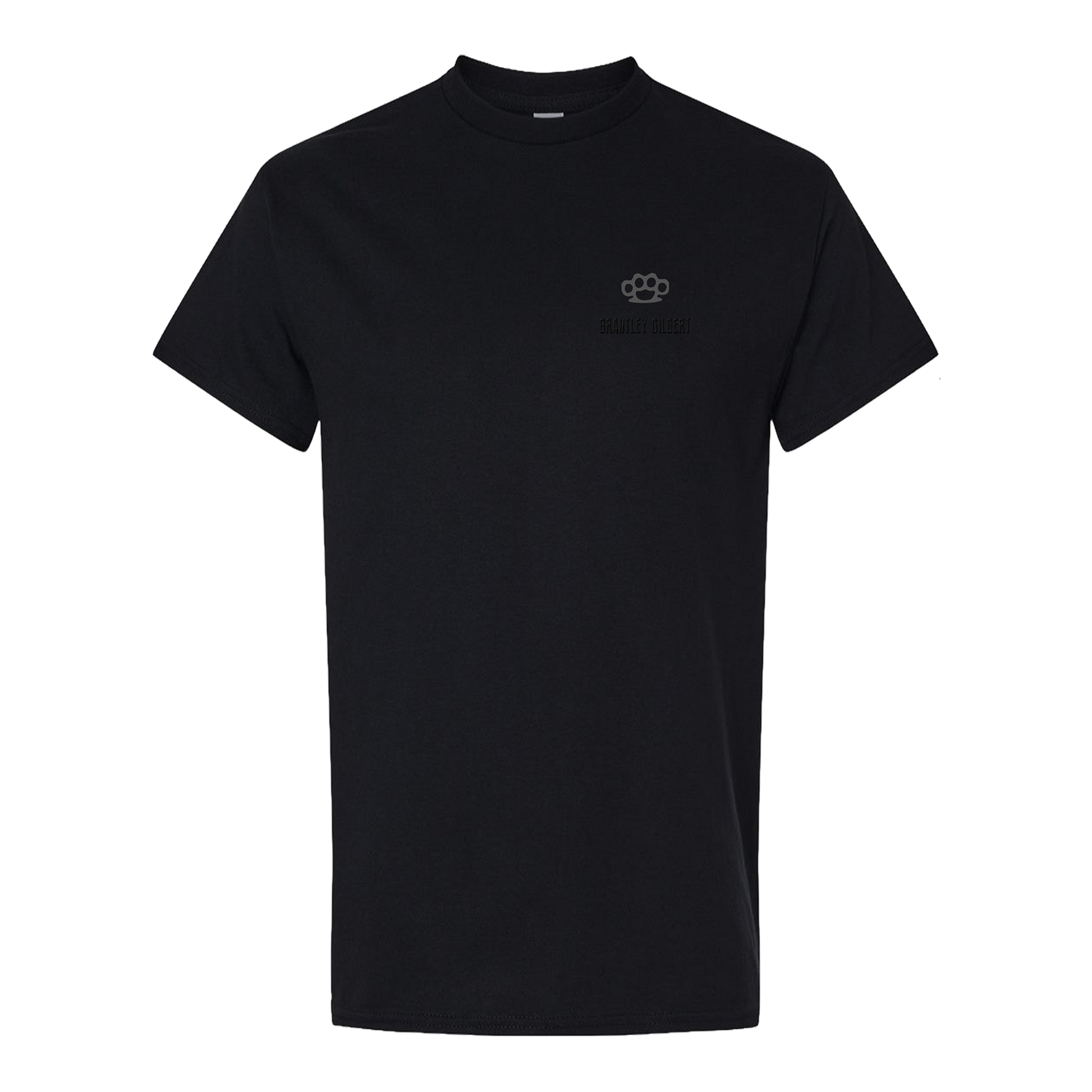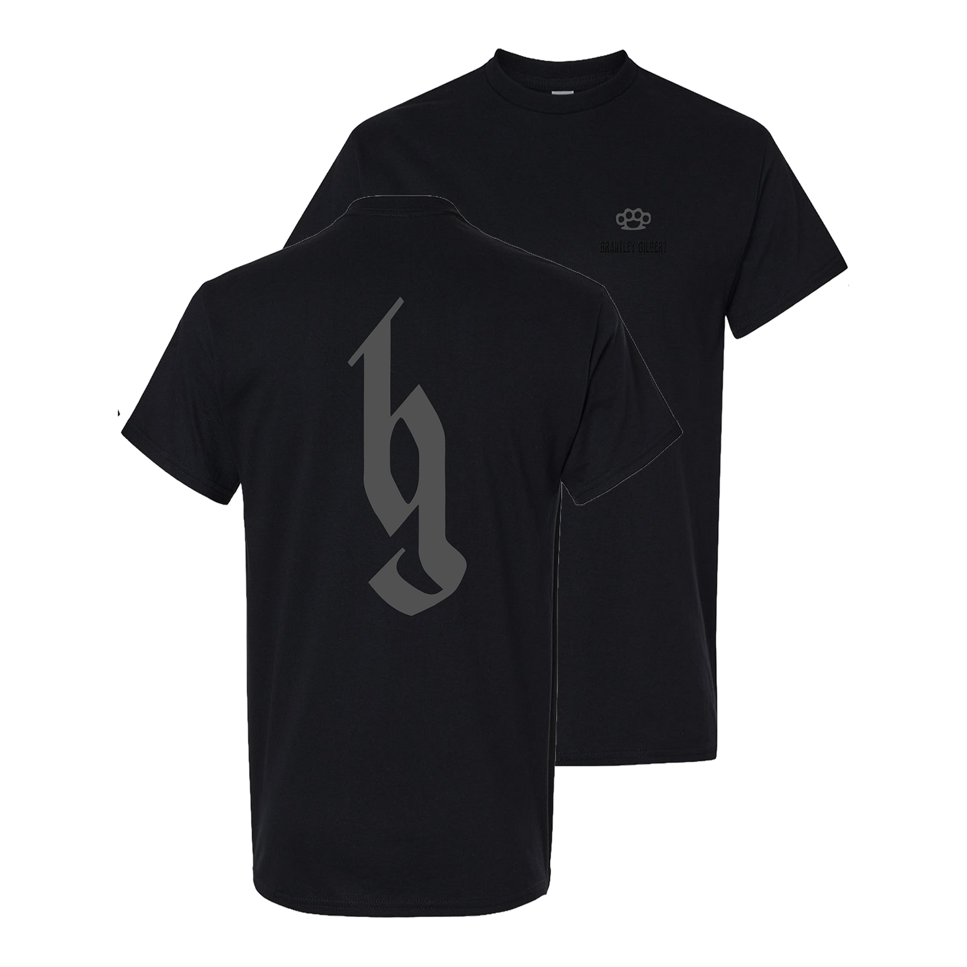 Brantley Gilbert Blackout Collection T-Shirt. Black heat stamp logo on front with dark gray print, back dark gray print.